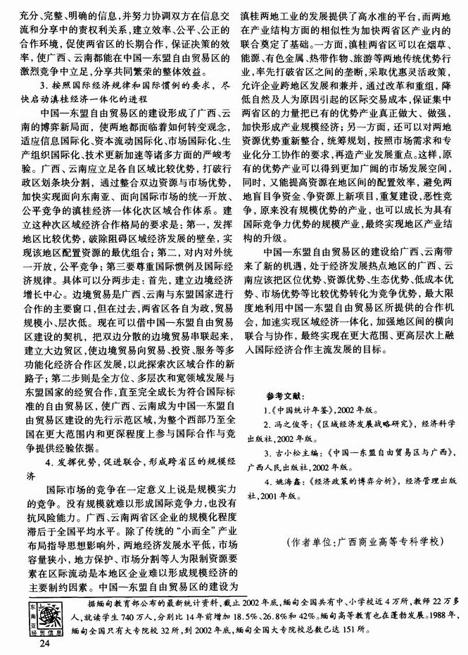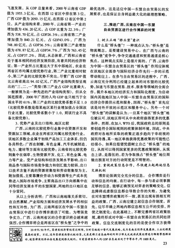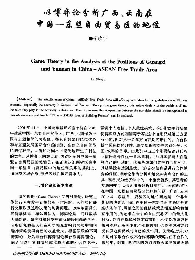 以博弈论分析广西、云南在中国-东盟自由贸易区的地位