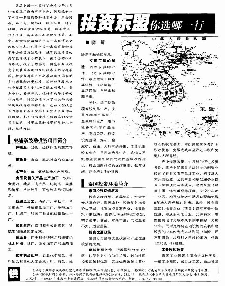 投资东盟你选哪一行