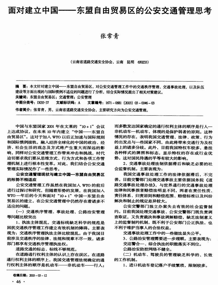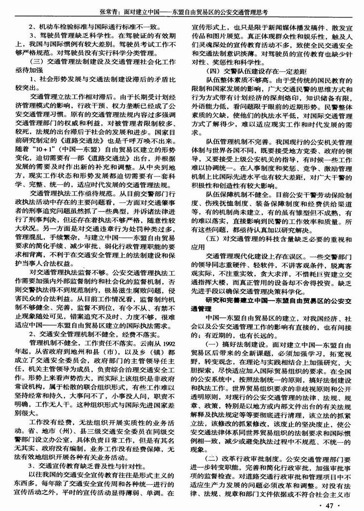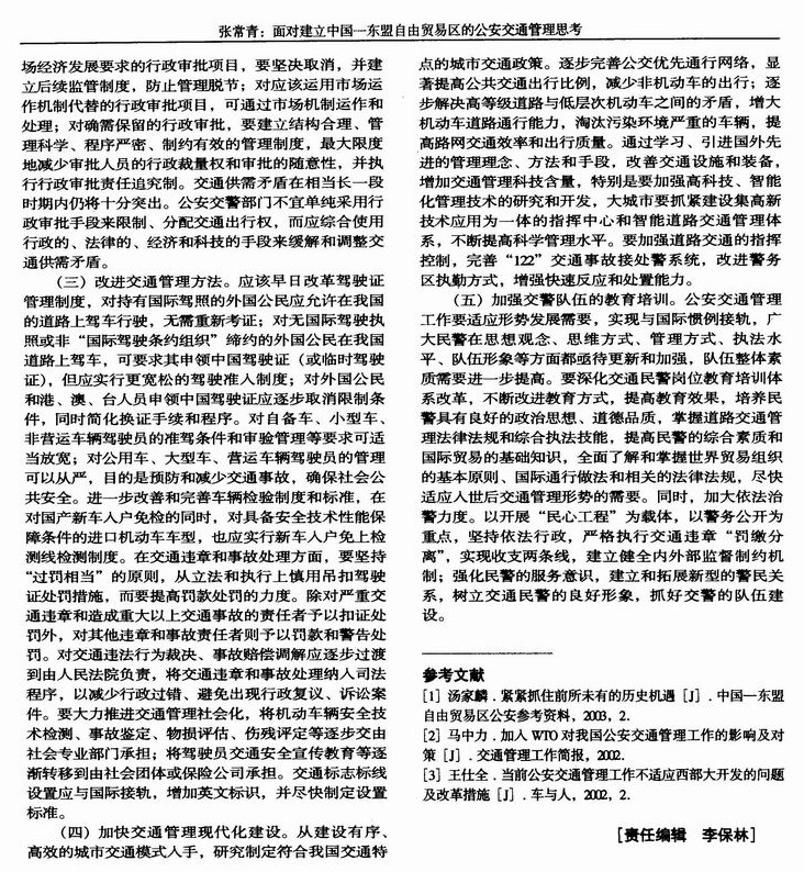 面对建立中国--东盟自由贸易区的公安交通管理思考