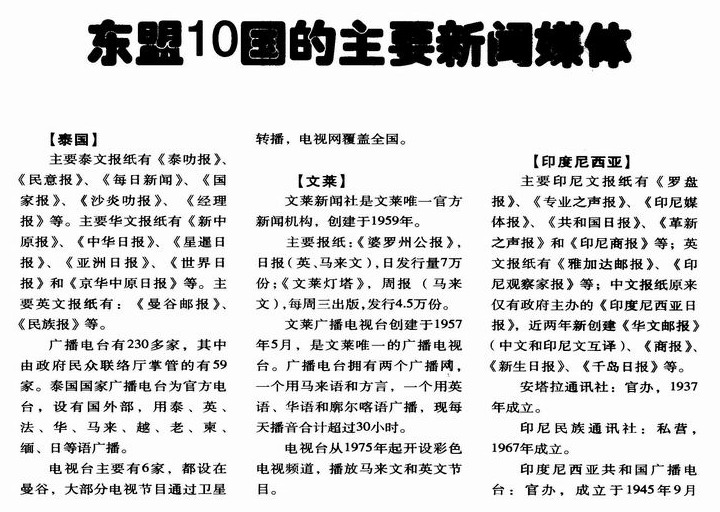 东盟10国的主要新闻媒体