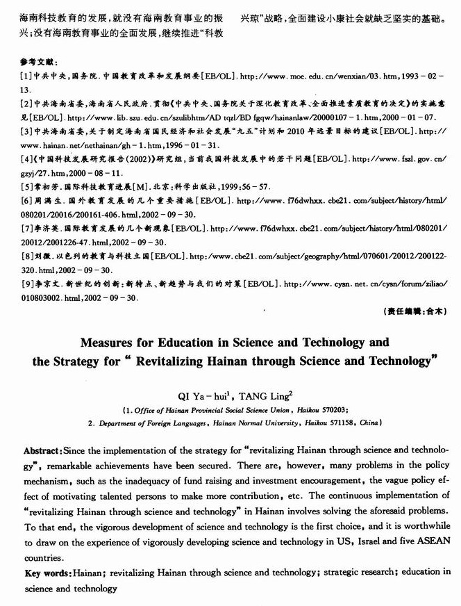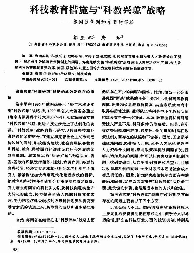 科技教育措施与“科教兴琼”战略——美国以色列和东盟的经验