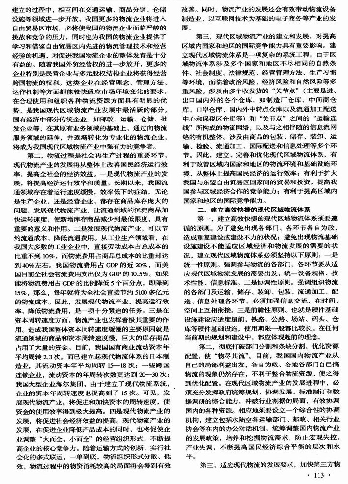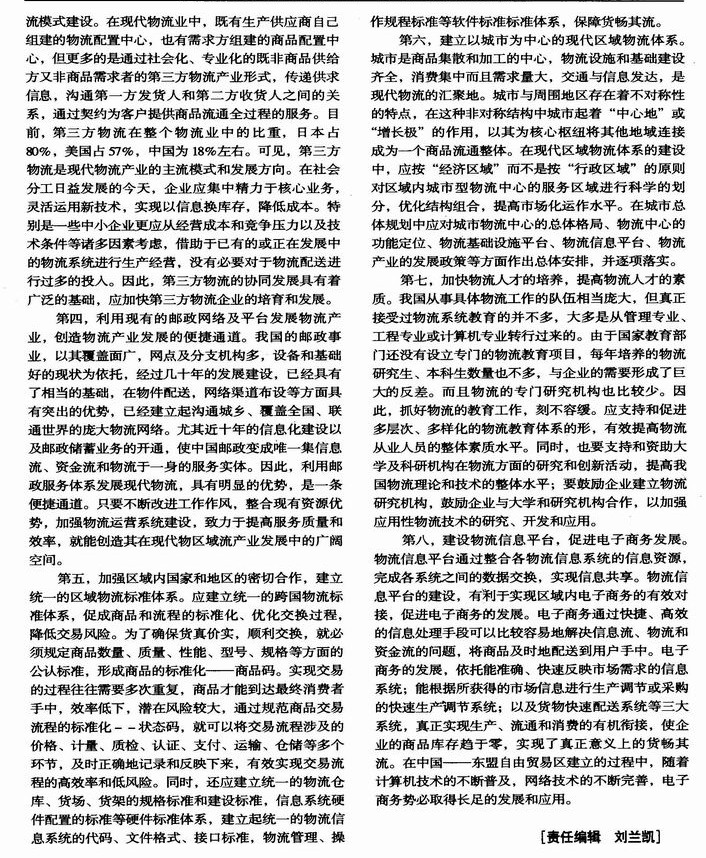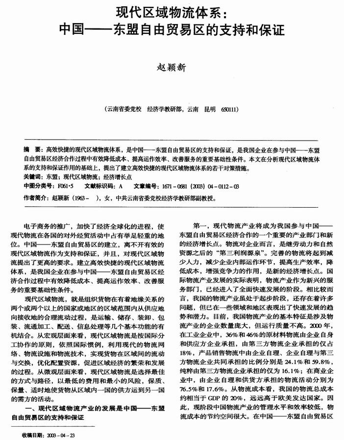 现代区域物流体系:中国——东盟自由贸易区的支持和保证