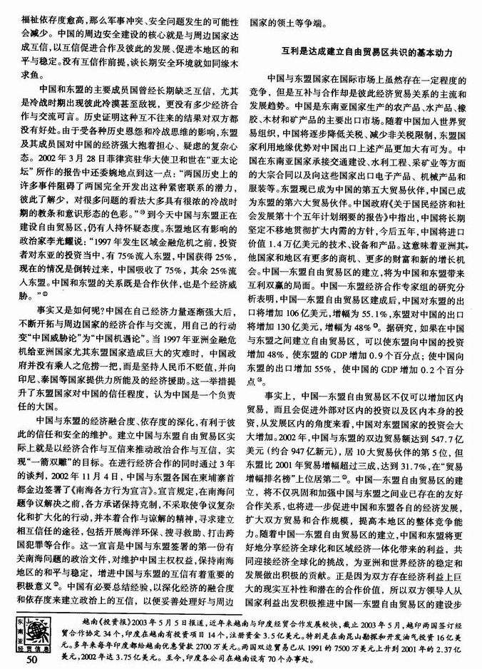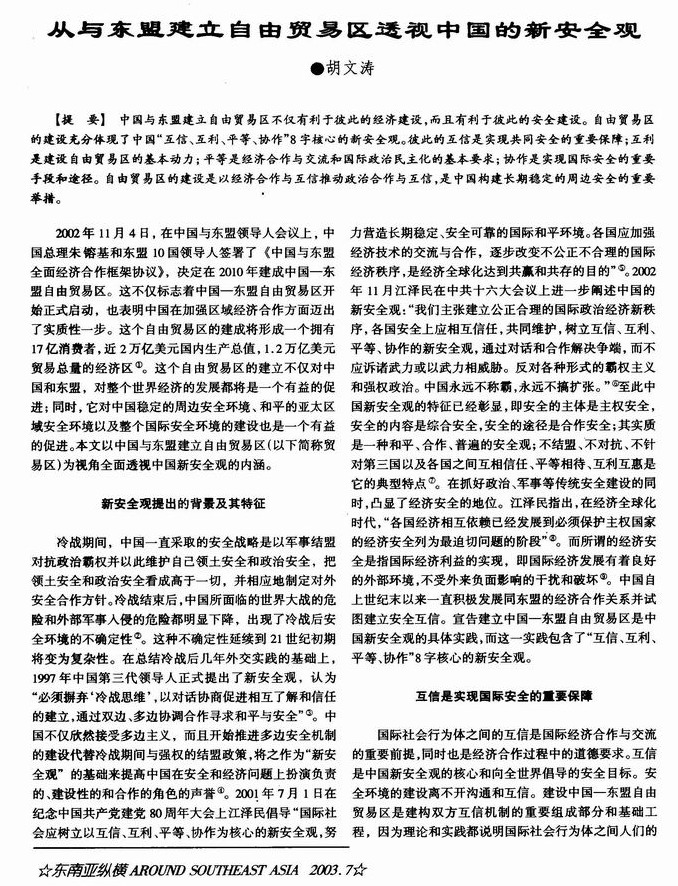 从与东盟建立自由贸易区透视中国的新安全观