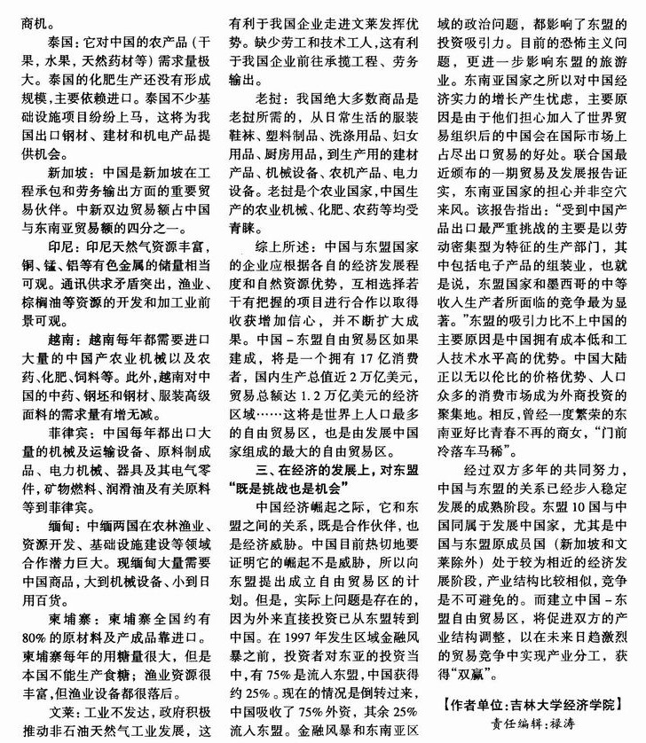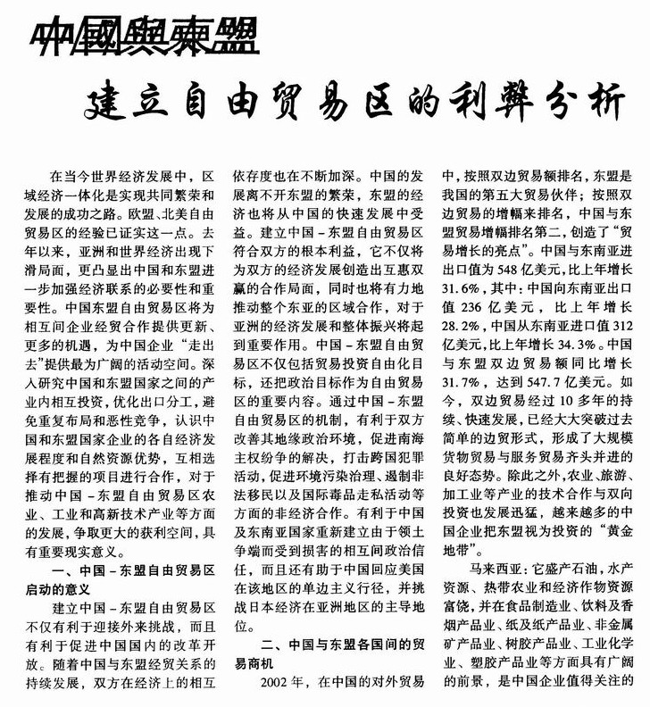 中国与东盟建立自由贸易区的利弊分析