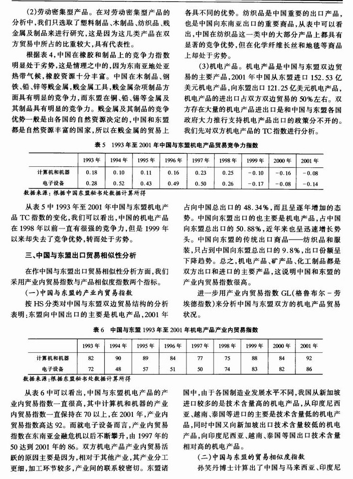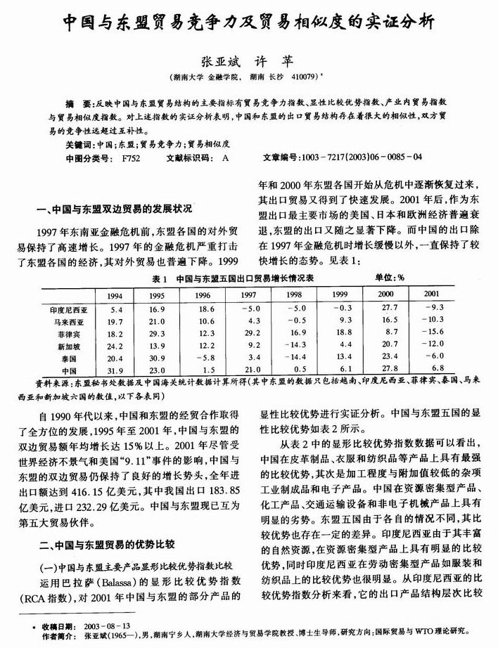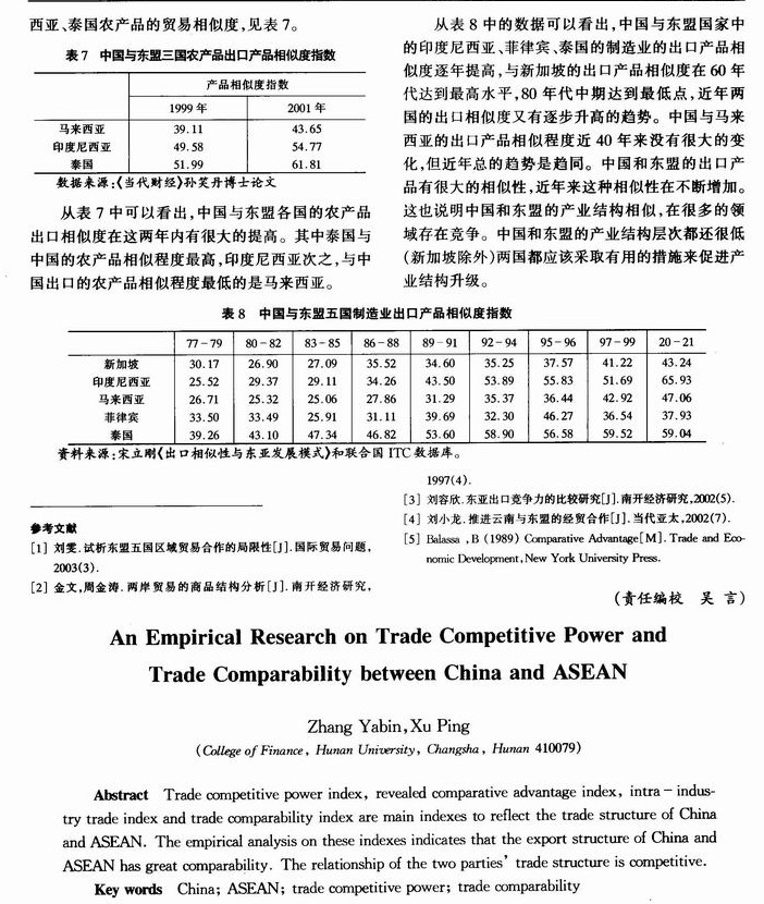 中国与东盟贸易竞争力及贸易相似度的实证分析