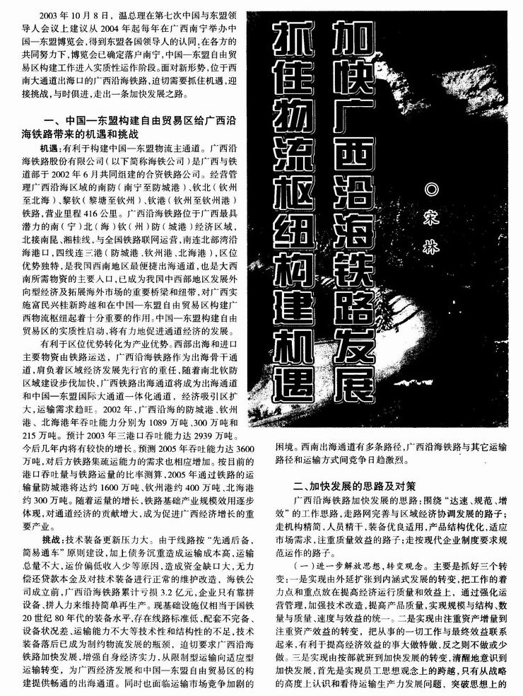 抓住物流枢纽构建机遇加快广西沿海铁路发展