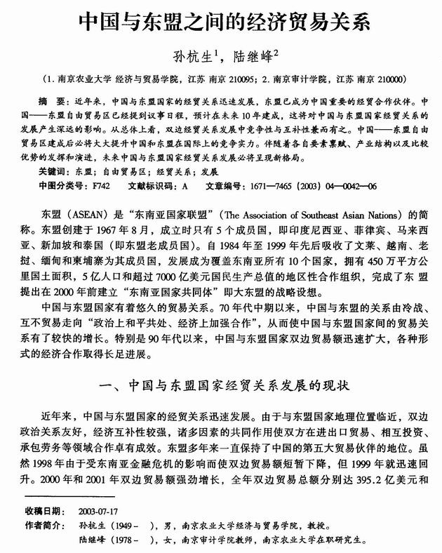 中国与东盟之问的经济贸易关系