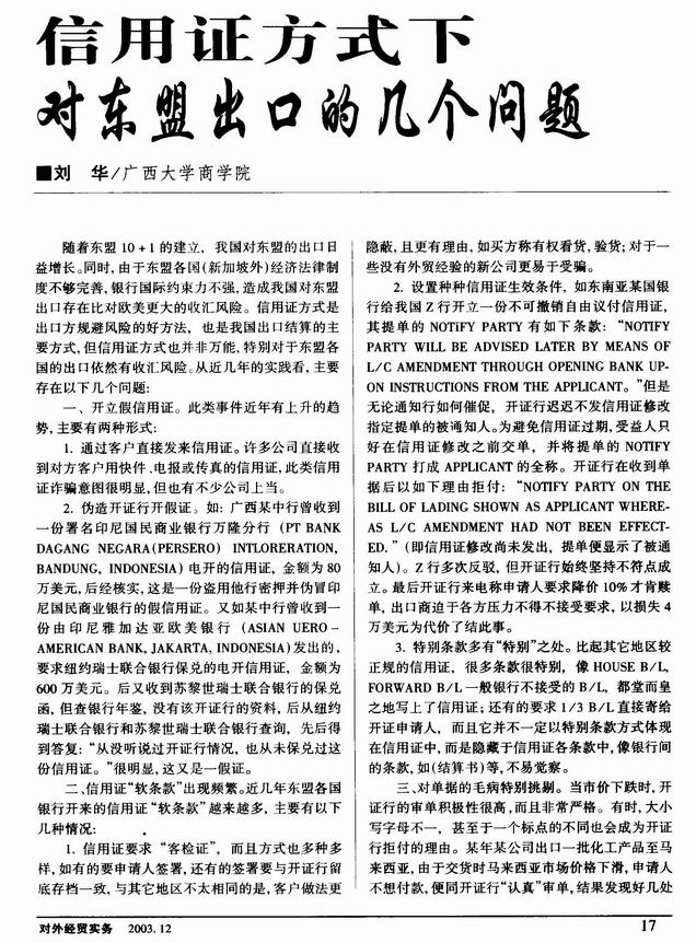 信用证方式下对东盟出口的几个问题