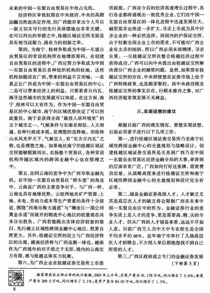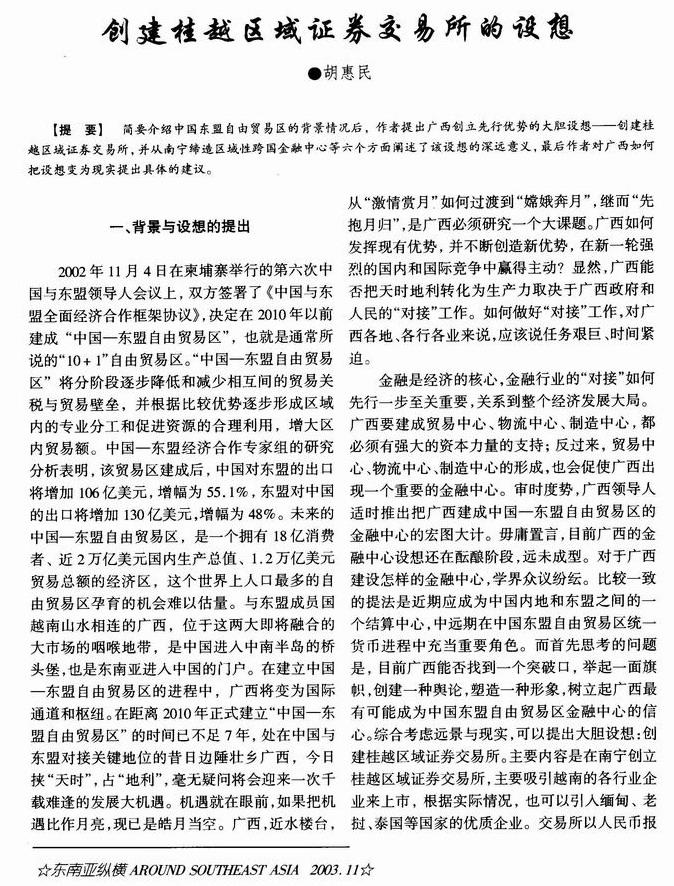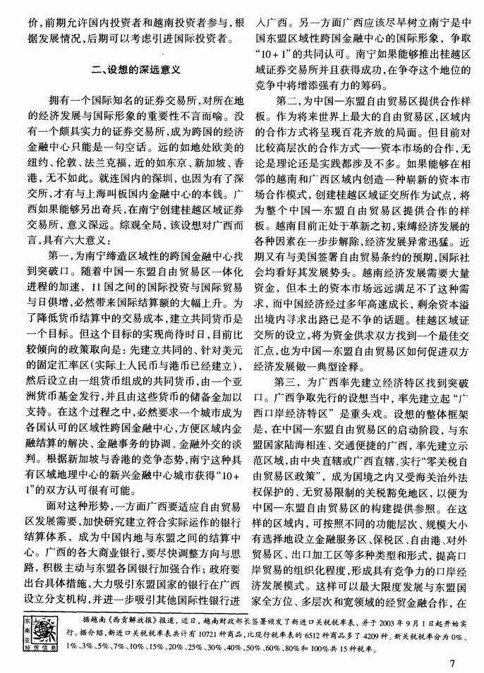 创建桂越区域证券交易所的设想