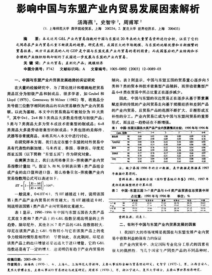 影响中国与东盟产业内贸易发展因素解析