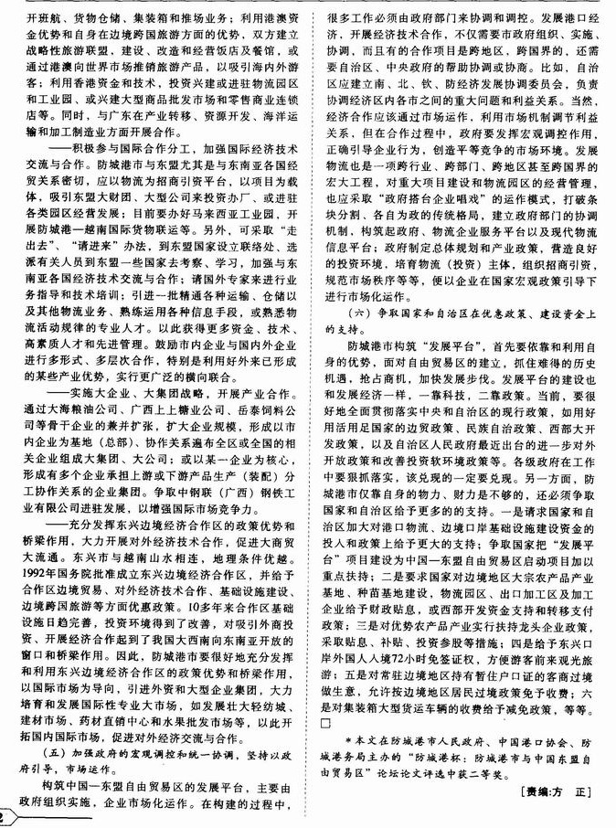 构筑防城港市在中国—东盟自由贸易区发展平台的若干思考