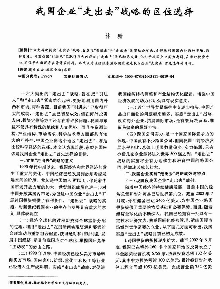 我国企业“走出去”战略的区位选择