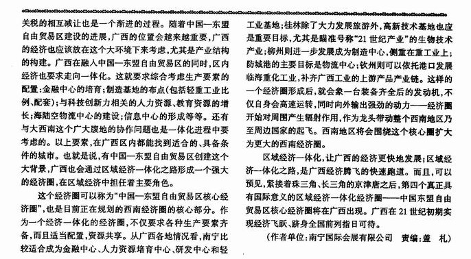 全力融入区域经济一体化全面提升广西的经济地位——关于二十一世纪初广西经济发展的战略建议