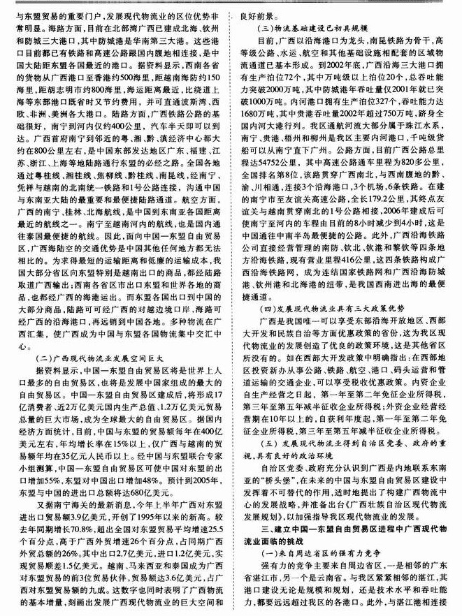 建立中国—东盟自由贸易区进程中广西现代物流业发展研究