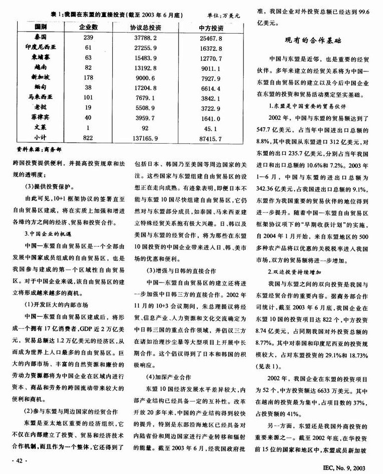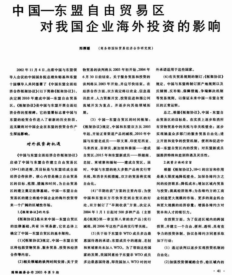 中国-东盟自由贸易区对我国企业海外投资的影响
