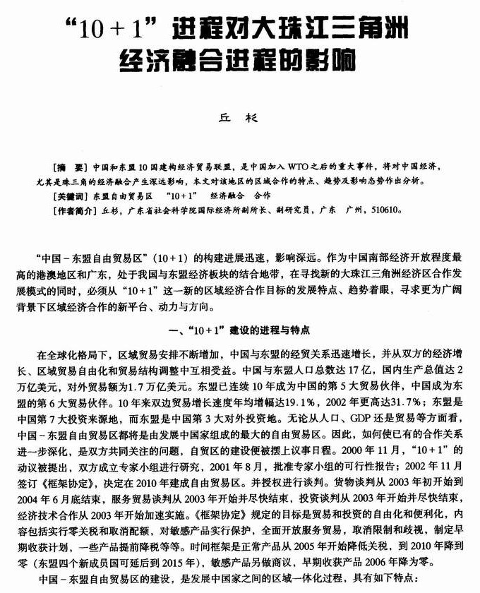 “10+1”进程对大珠江三角洲经济融合进程的影响