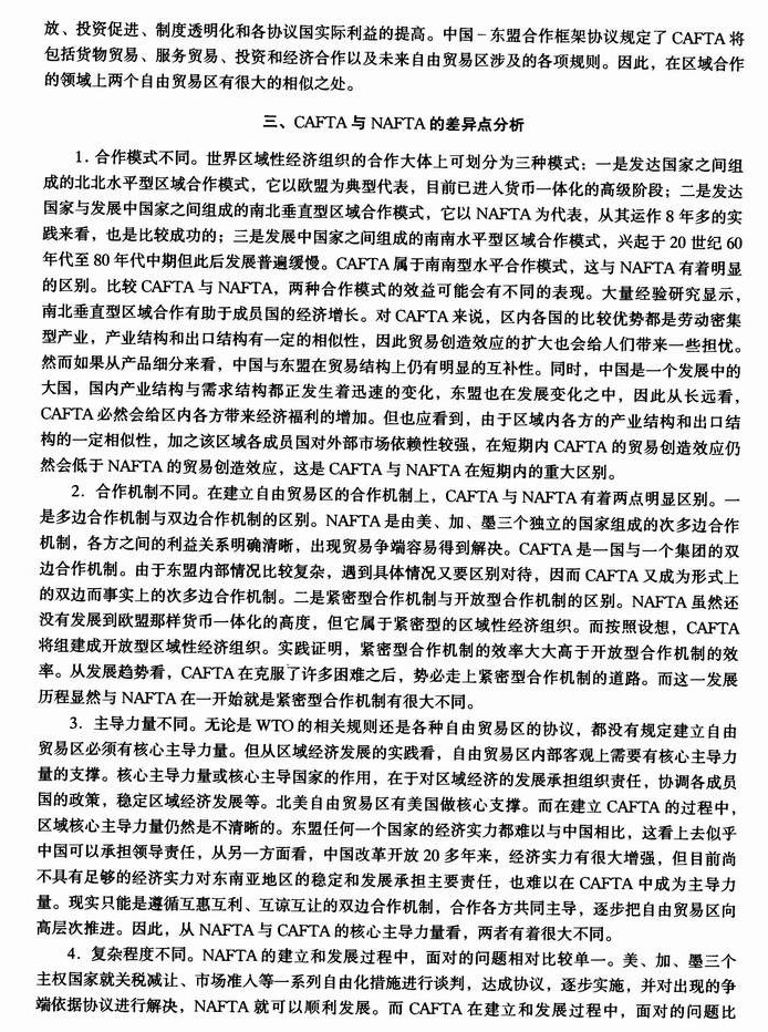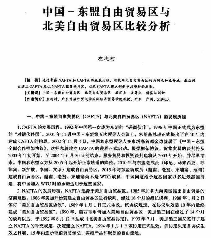 中国-东盟自由贸易区与北美自由贸易区比较分析