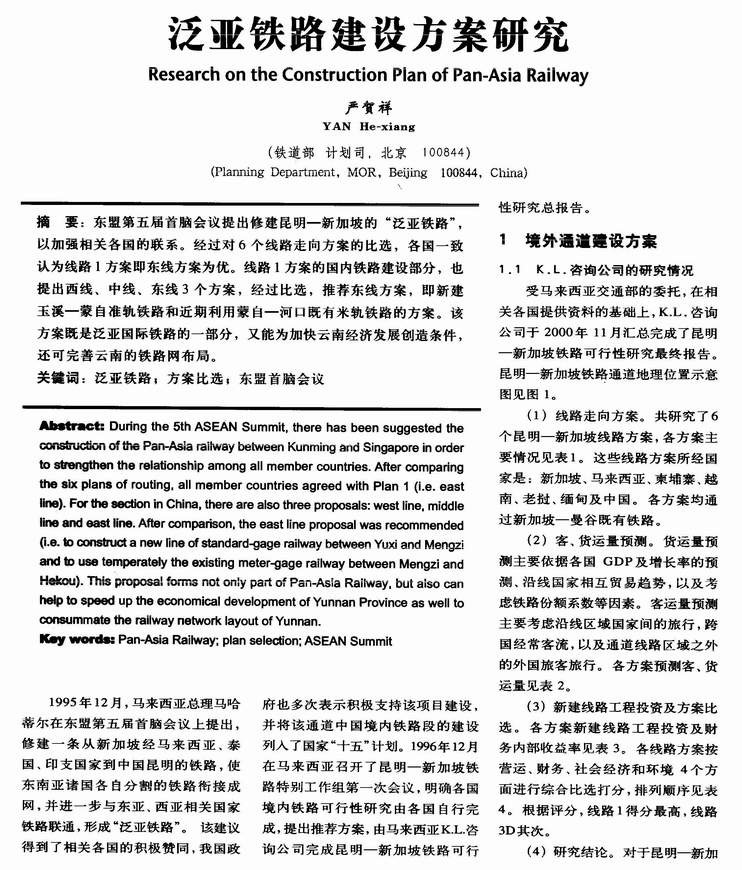 泛亚铁路建设方案研究