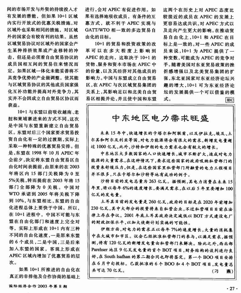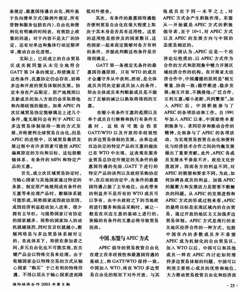 中国东盟自由贸易区与APEC方式