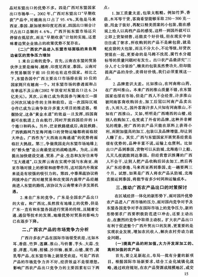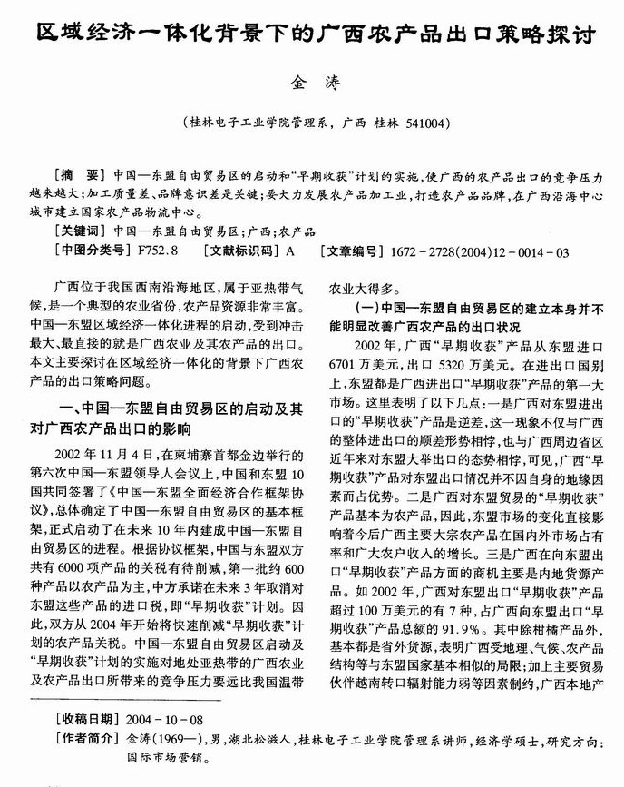 区域经济一体化背景下的广西农产品出口策略探讨