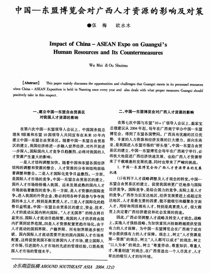 中国—东盟博览会对广西人才资源的影响及对策