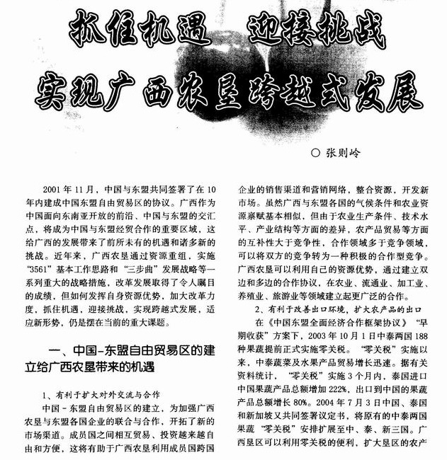 抓住机遇 迎接挑战 实现广西农垦跨越式发展