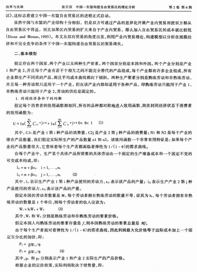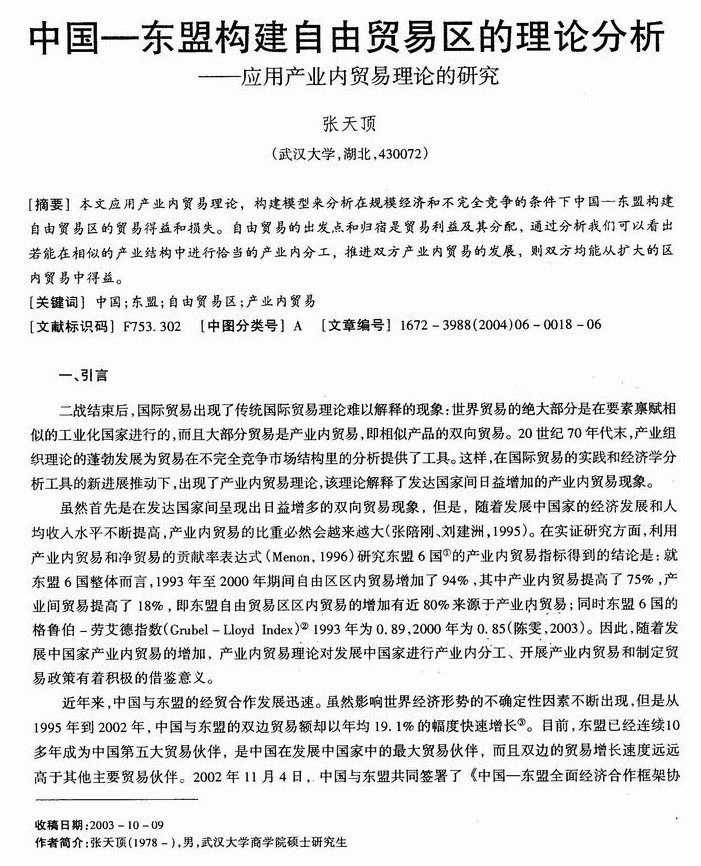 中国—东盟构建自由贸易区的理论分析——应用产业内贸易理论的研究