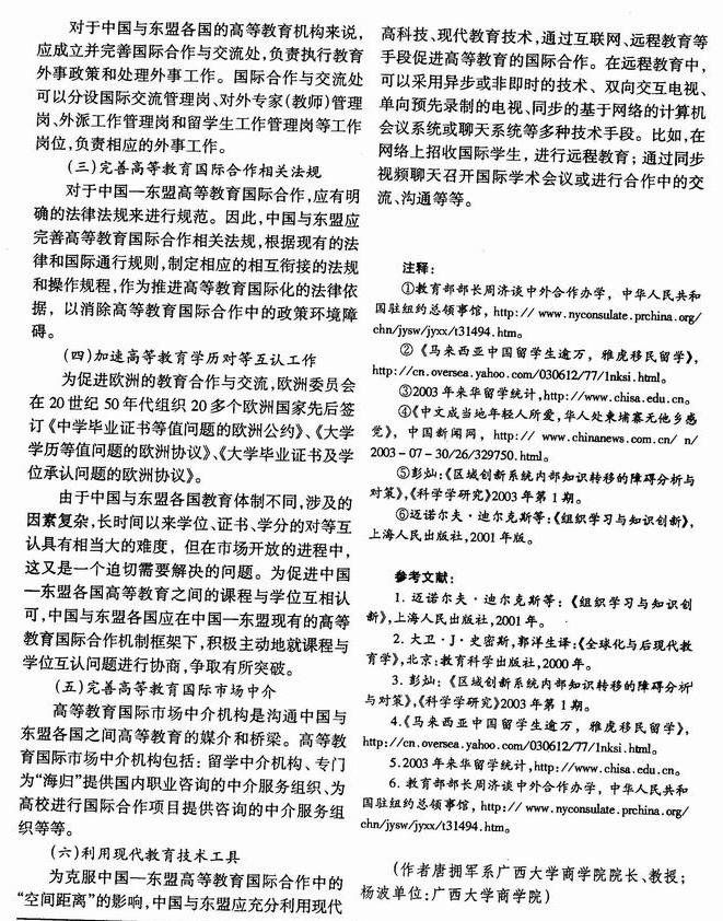 中国—东盟高等教育国际合作与交流的障碍与对策