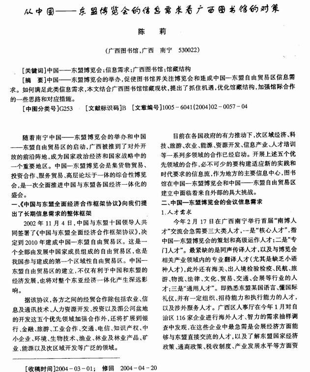 从中国——东盟博览会的信息需求看广西图书馆的对策