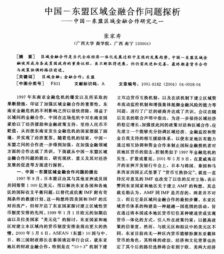 中国—东盟区域金融合作问题探析——中国—东盟区域金融合作研究之一