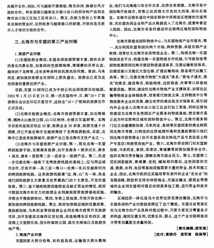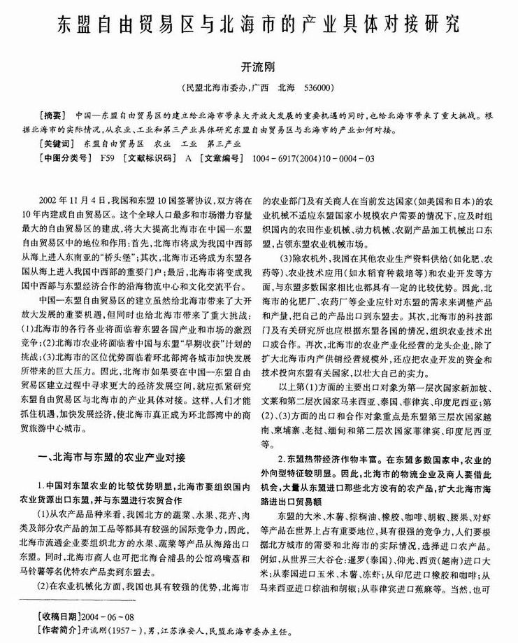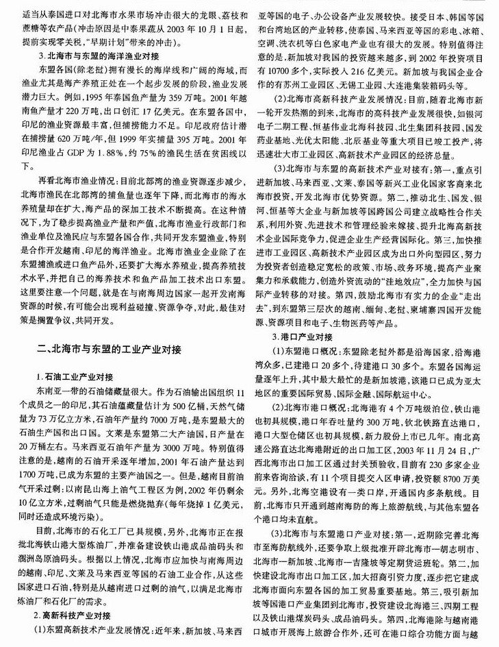 东盟自由贸易区与北海市的产业具体对接研究