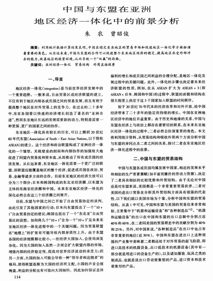 中国与东盟在亚洲地区经济一体化中的前景分析
