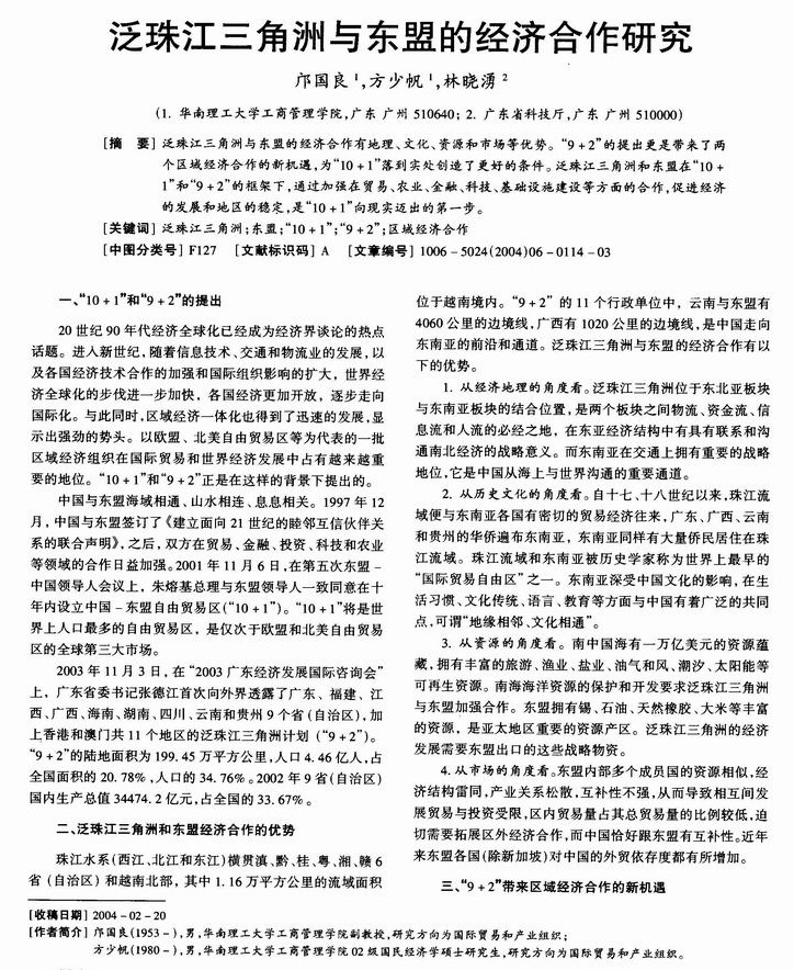 泛珠江三角洲与东盟的经济合作研究