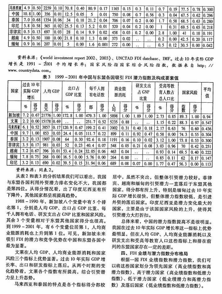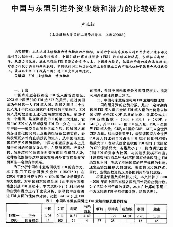 中国与东盟引进外资业绩和潜力的比较研究