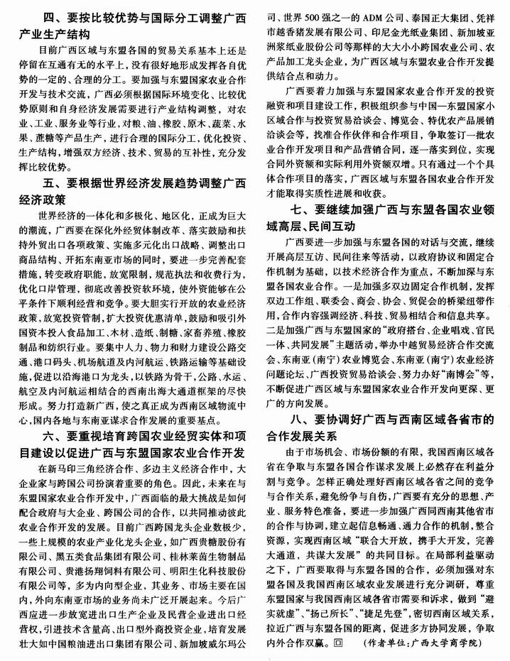 广西与东盟农业合作开发的冷思考
