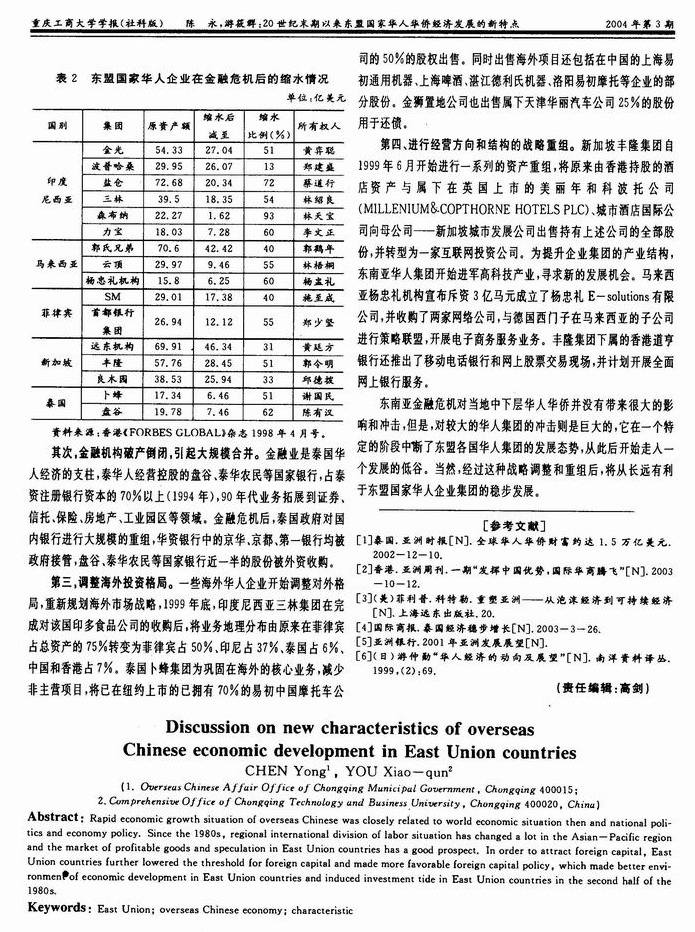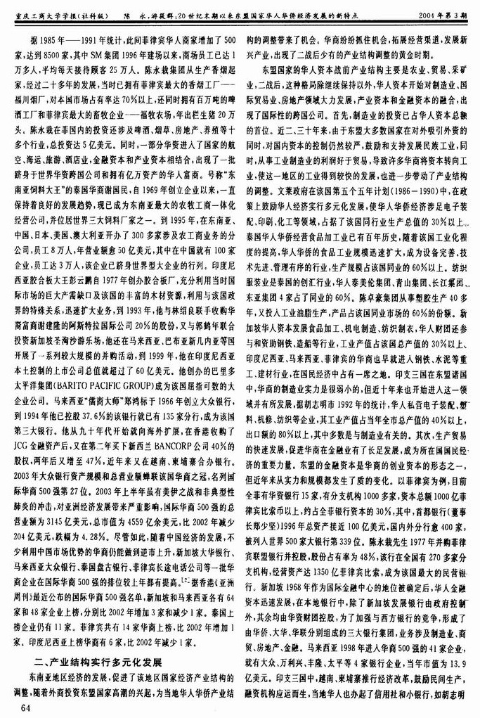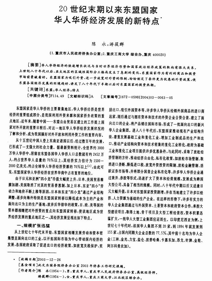 2O世纪末期以来东盟国家华人华侨经济发展的新特点