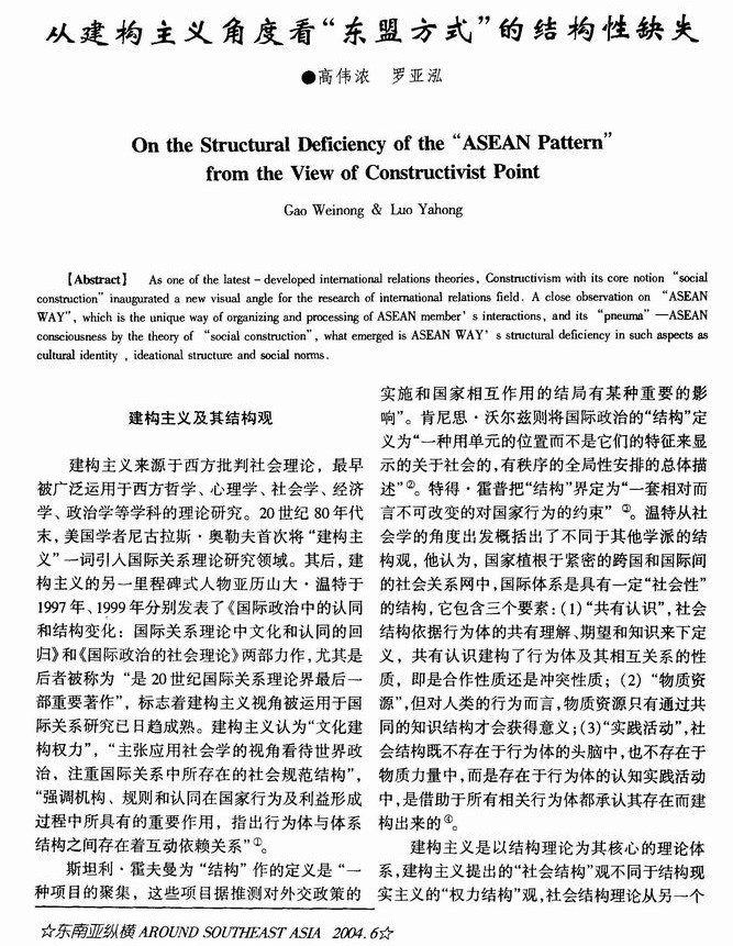 从建构主义角度看“东盟方式”的结构性缺失