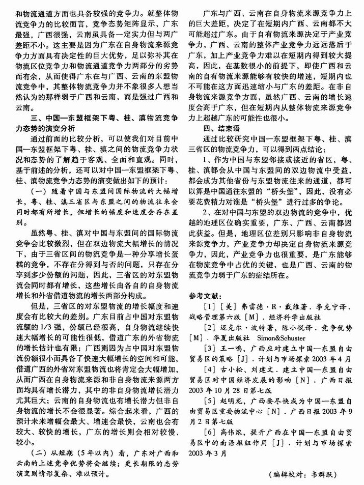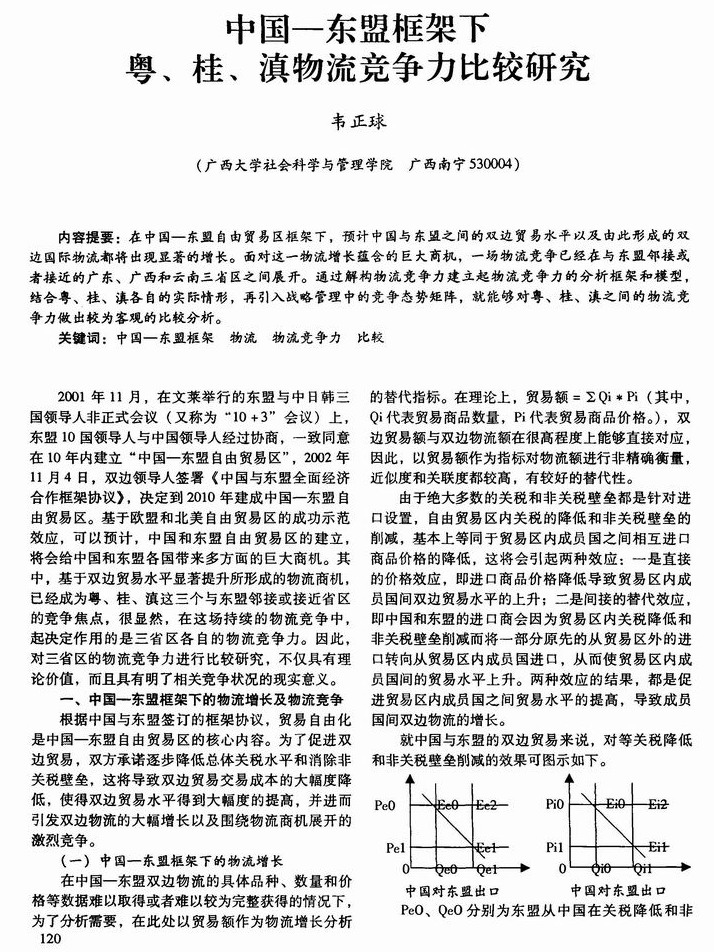 中国—东盟框架下粤、桂、滇物流竞争力比较研究