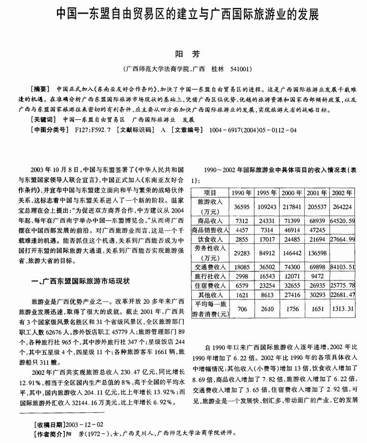 中国—东盟自由贸易区的建立与广西国际旅游业的发展