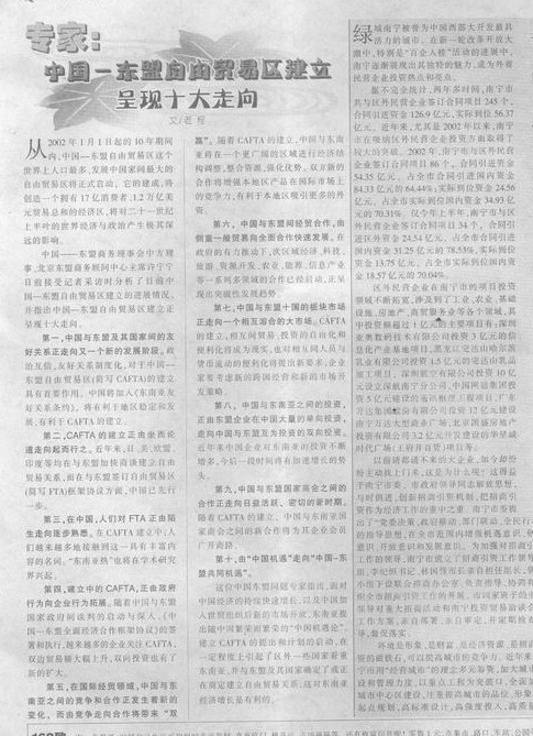 专家:中国-东盟自由贸易区建立呈现十大走向