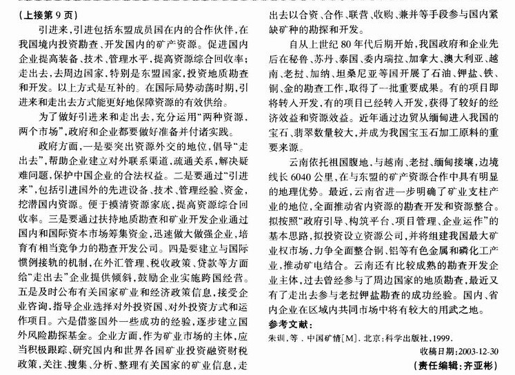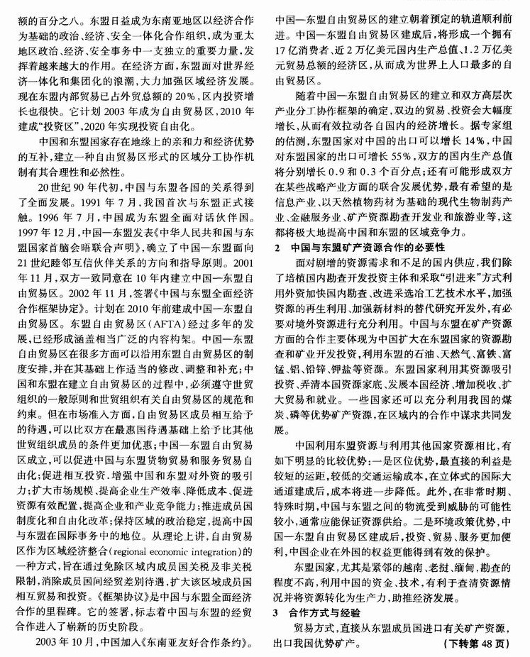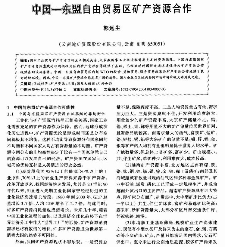 中国东盟自由贸易区矿产资源合作