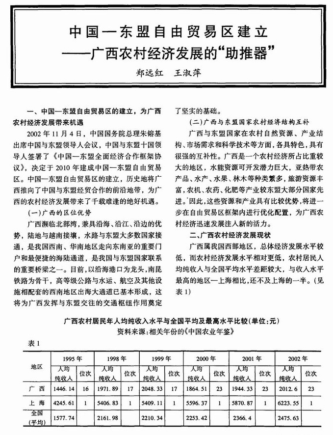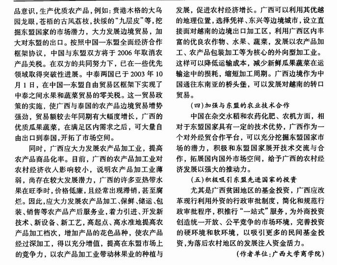 中国—东盟自由贸易区建立——广西农村经济发展的“助推器”