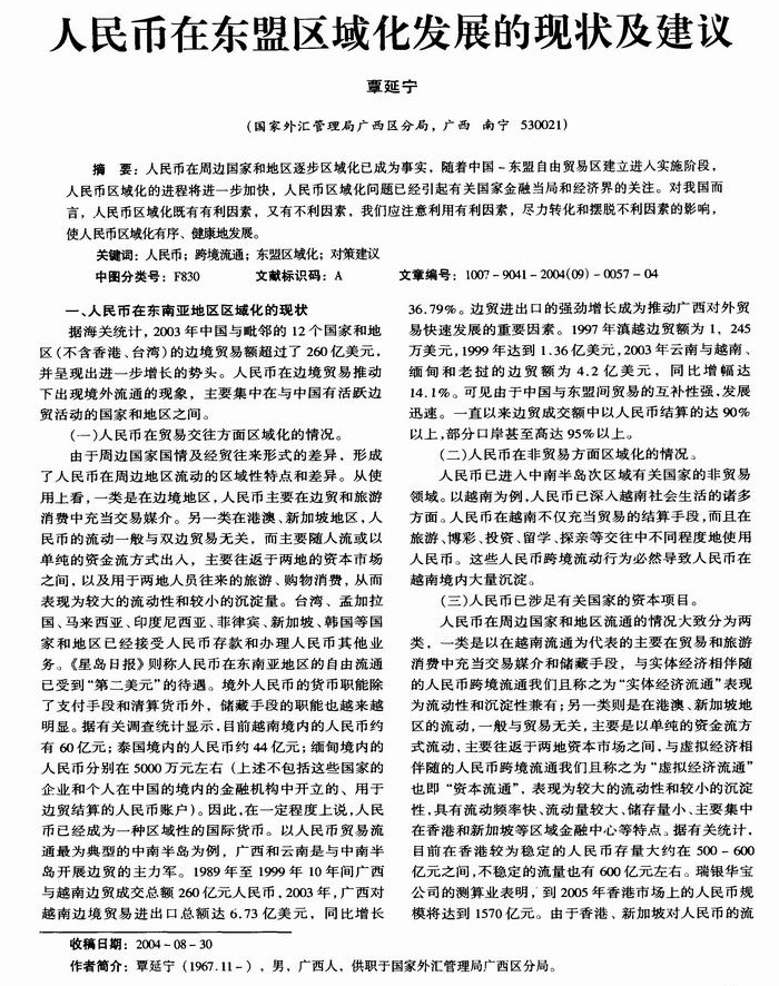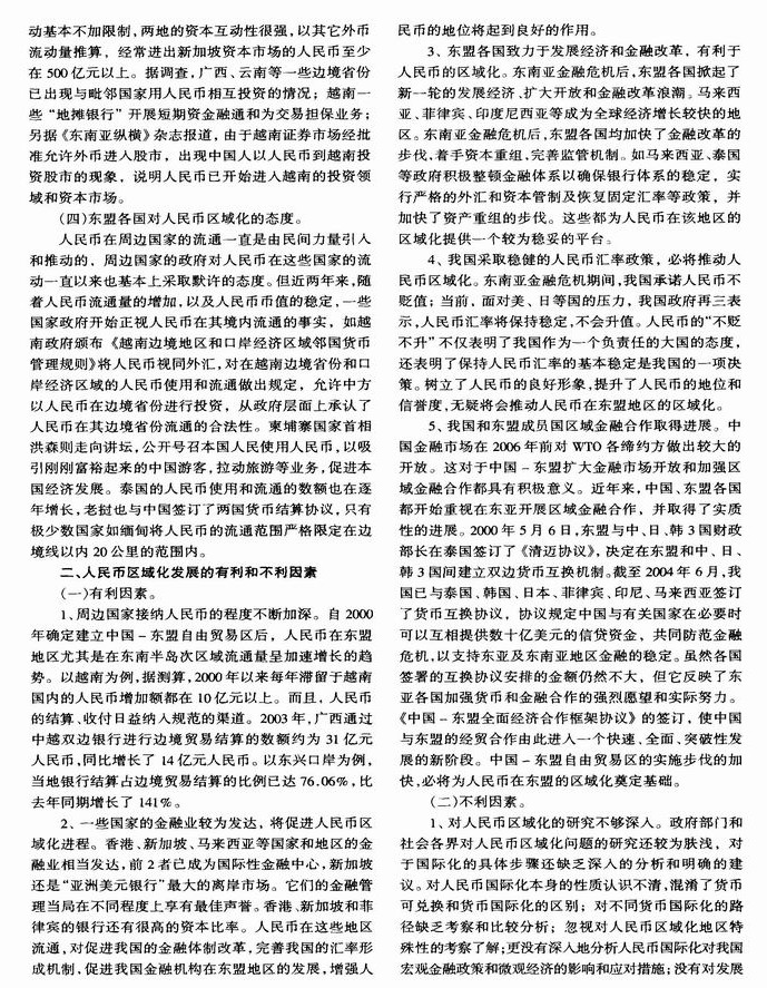 人民币在东盟区域化发展的现状及建议
