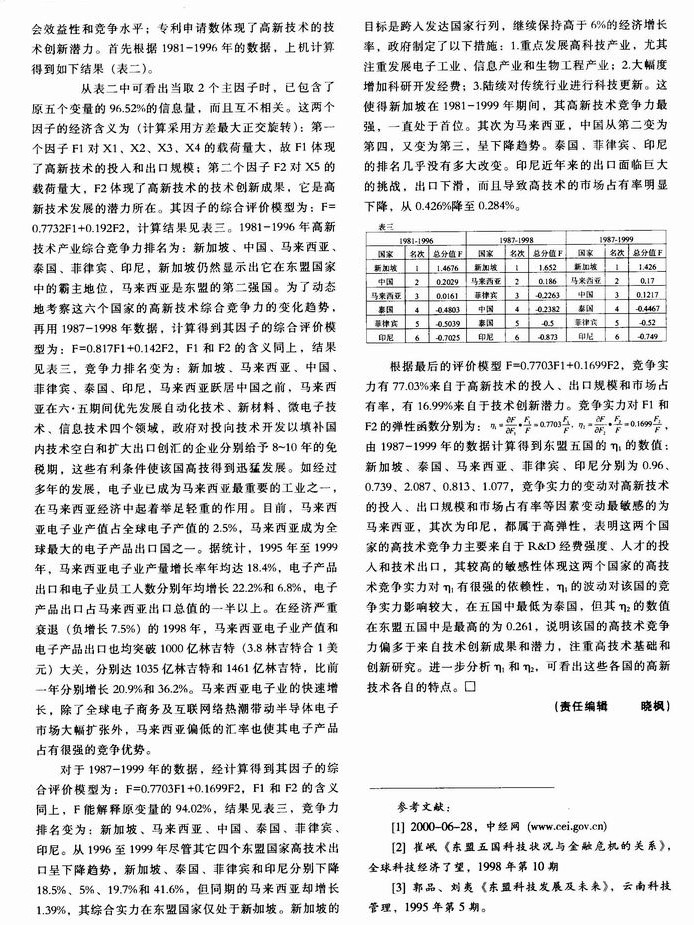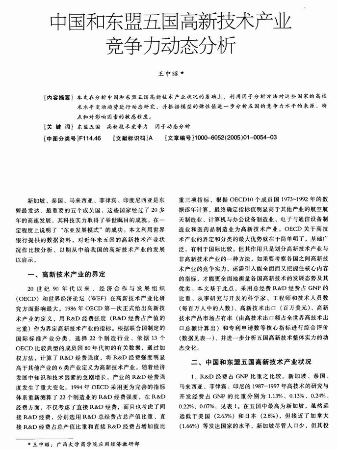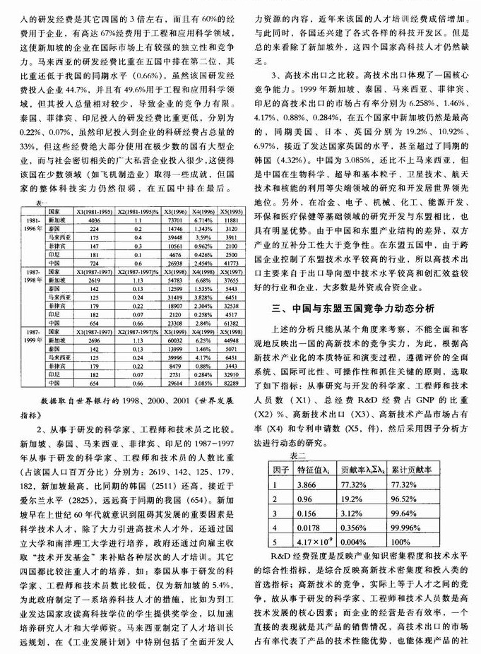 中国和东盟五国高新技术产业竞争力动态分析