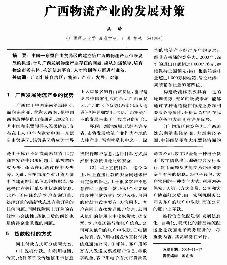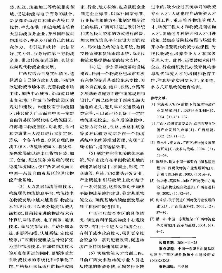 广西物流产业的发展对策
