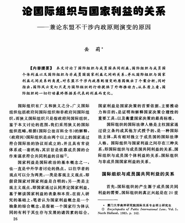 论国际组织与国家利益的关系——兼论东盟不干涉内政原则演变的原因