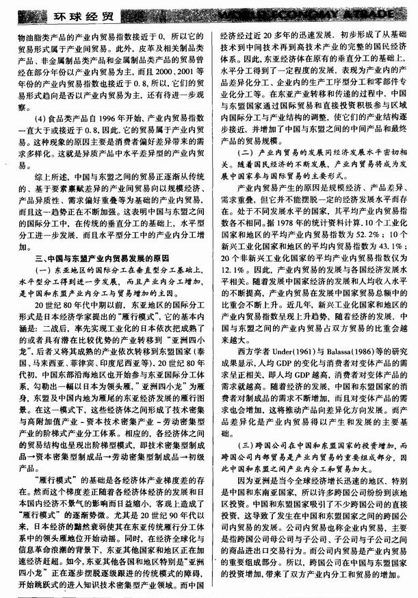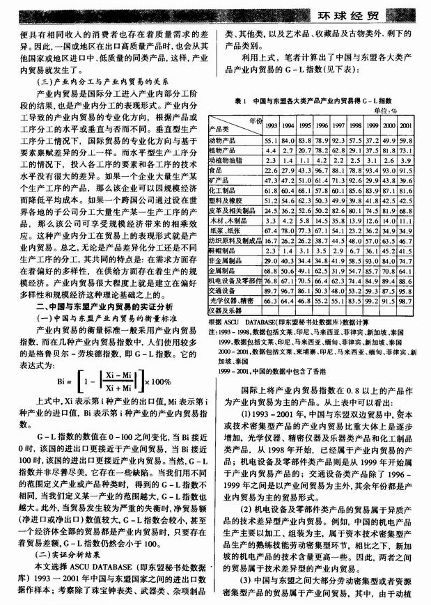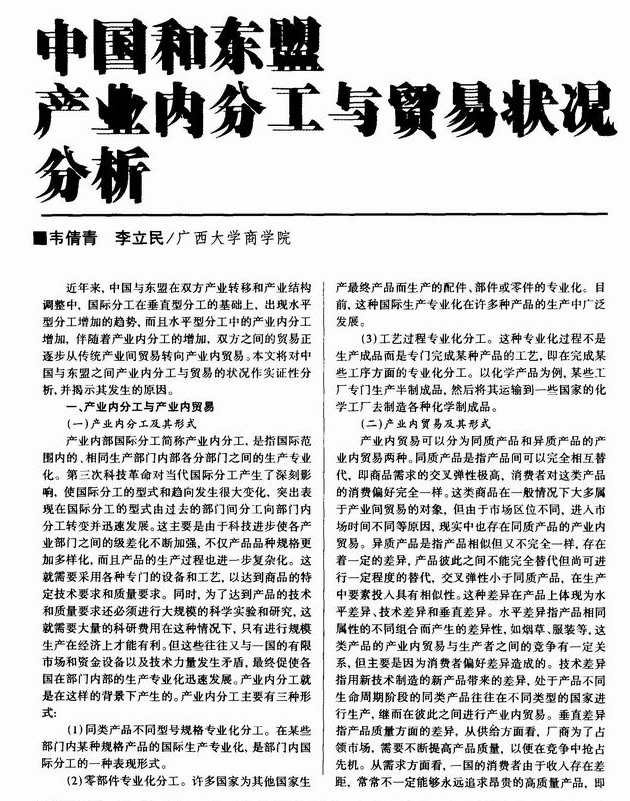 中国和东盟产业内分工与贸易状况分析