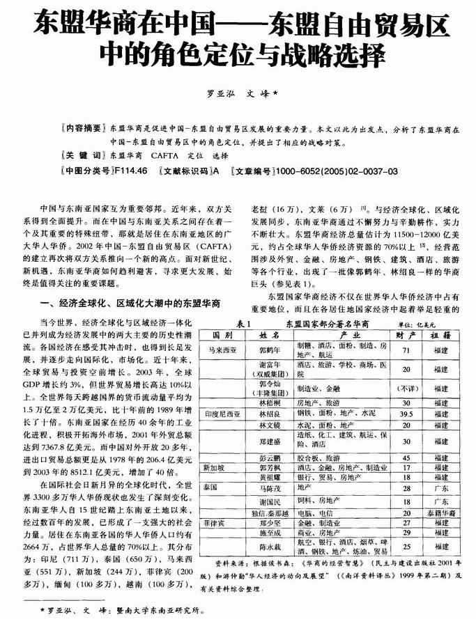 东盟华商在中国——东盟自由贸易区中的角色定位与战略选择