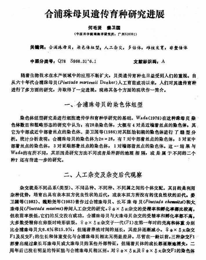 合浦珠母贝遗传育种研究进展