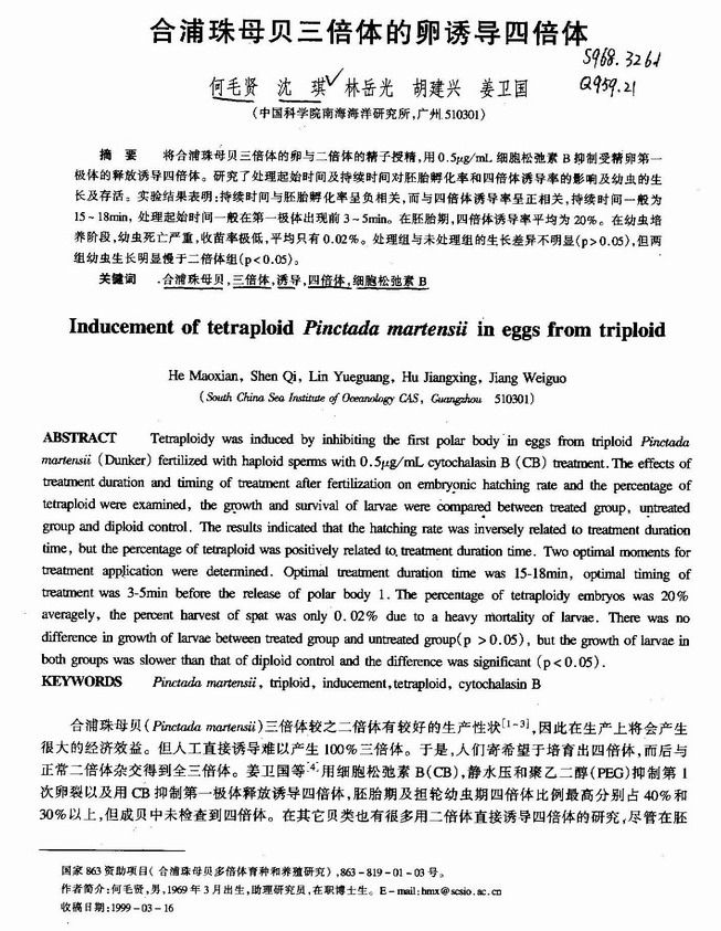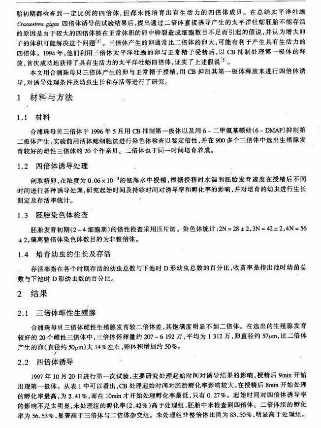 合浦珠母贝三倍体的卵诱导四倍体